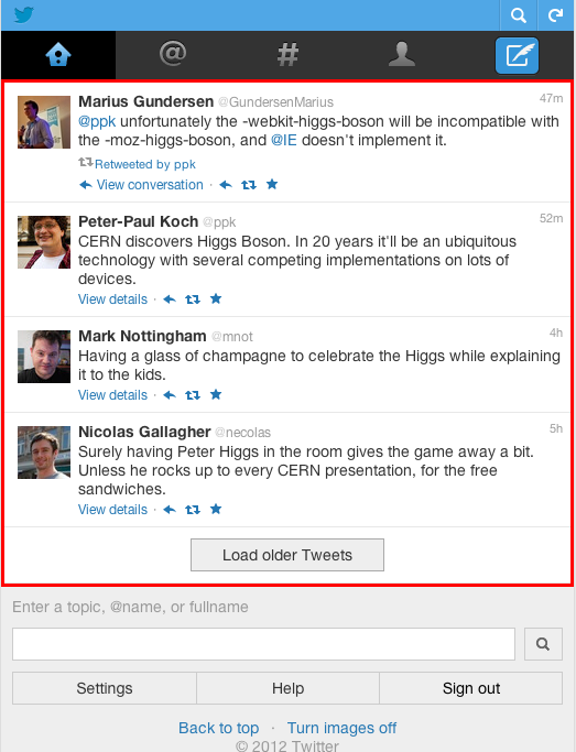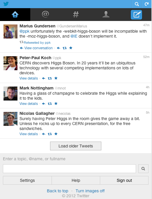 What if Twitter had applied a mobile-first / content-first strategy to the twitter.com upgrade, using mobile.twitter.com as the starting point and relying on progressive enhancement in the browser to provide a richer UI?